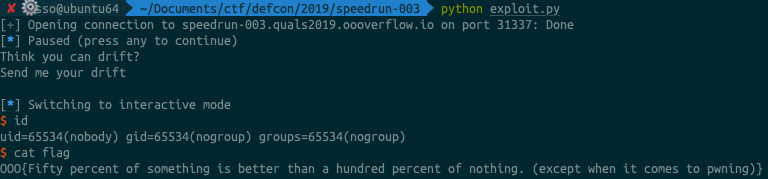 p = remote('speedrun-002.quals2019.oooverflow.io', 31337)