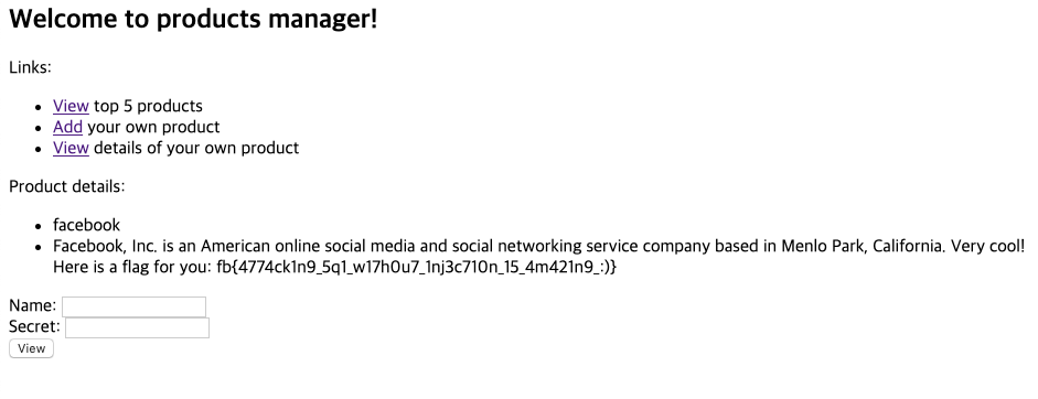 flag는 facebook이란 name이 있는 description에 있다.